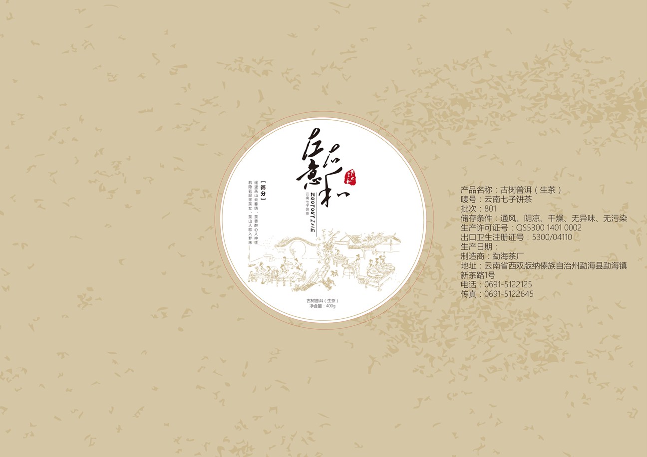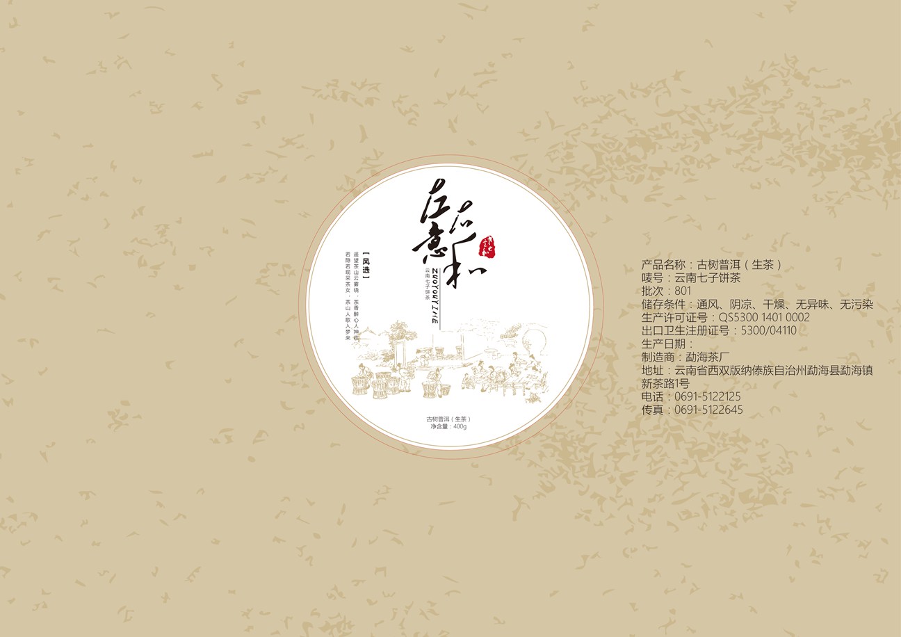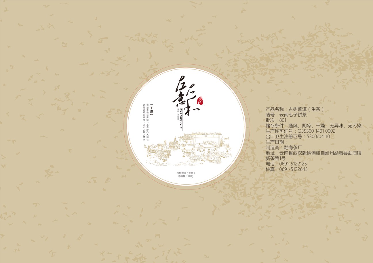 左右意和文化传播和勐海佛源茶厂联和出品。 为云南七子茶饼提供了包装设计服务,运用专业的品牌理念为客户进行品牌服务,有效提升其商业中的品牌价值。